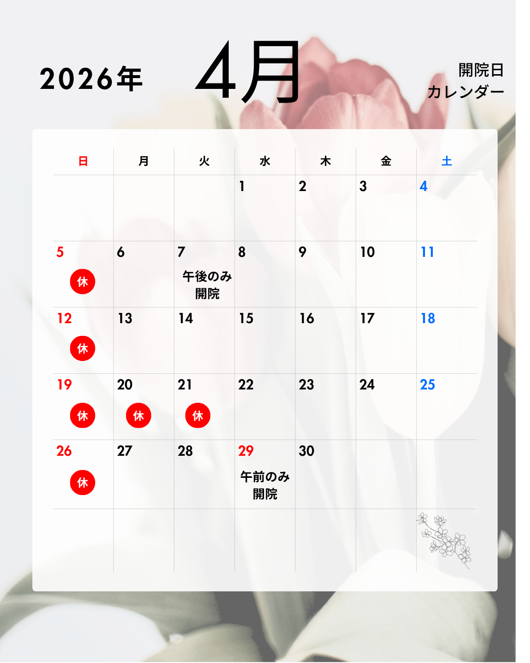 4月29日(昭和の日)は午前のみ開院いたします